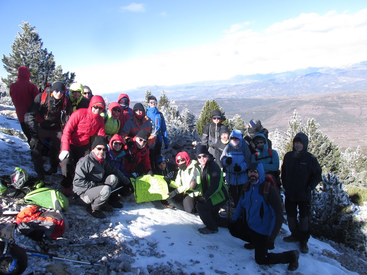 Estaremos a 3 o 4º bajo cero, pero la sensación térmica es bastante más, prueba de ello es que hasta los moqueros y el agua se hielan. Una vez instalada con todos los honores LA CRUZ y realizar la foto de grupo, sin responso, a las 12,45 h., después de limpiar y recoger los trastos y desperdicios, comenzamos el regreso.